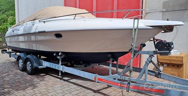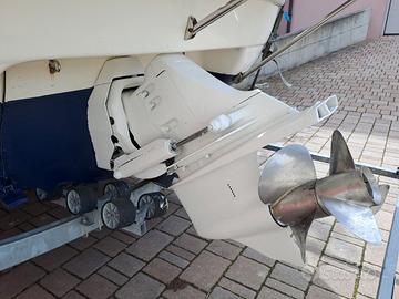 Vendo Cranchi Turchese 24 del 1999, (uno dei ultimi modelli in Kevlar) barca perfetta in tutto. Comperata nel 2021 da una coppia che in vent'anni ha fatto 320 ore motore. Nel 2023 ho sbarcato i motori e rifatto tutto, rifatto piede e attacco piede. Iniettori nuovi con un consumo bassissimo documentato di 15 litri/ora a 25 nodi. Velocità di punta 36 nodi. La tappezzeria è ancora quella originale Cranchi ed è perfetta con le scritte incise dalla Cranchi. La barca è sempre stata rimessa in capannone dopo ogni uso fino al 2021. Io la ho usata i tre mesi estivi e rimessa sempre in capannone. Attualmente la barca ha 620 ore.
