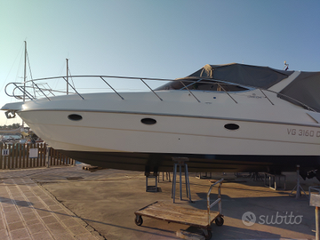 La migliore della sua categoria per spazi, prestazioni e consumi irrisori. Sempre rimessata e tagliandata ogni anno presso officina ufficiale Volvo Penta, con fatture, tutto dimostrabile. Motori 2 x 231 Volvo diesel. 2 cabine vere, cucina, dinette trasformabile x complessivi 6 posti letto. Frigo in cabina e nel pozzetto, strumentazione completa Raymarine del 2019, autopilota, GPS, VHF, manette nuove Volvo come elettroniche 2021, eliche 2022. Tendalino con zanzariere e chiusura totale 2021. Fari led subacquei, flap, generatore corrente Paguro. Televisore 50 pollici nella dinette, 28 nella cabina armatoriale. Passerella Besenzoni. Barca del 2001 tenuta con amore, sempre migliorata ogni anno. Internamente aggiornata. Si consegna con tagliando completo e antivegetativa, nulla da fare. L'unica da Napoli in giù. Pronta x la stagione. Non perdere tempo a cercare surrogati o brutte copie, vai sul sicuro con la regina dei cruiser!!! Vendesi solo per passaggio a categoria superiore. Accetto permute tipo Fly da 39 piedi a 46, con eventuale differenza a mio carico.Prezzo intrattabile!!! Barca perfetta, con perizia, qualsiasi prova anche con vs. meccanico. È gradita serietà e contatto solo se seriamente interessati. Dopo primo contatto si potranno fornire ulteriori foto.