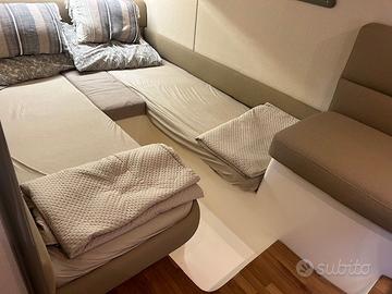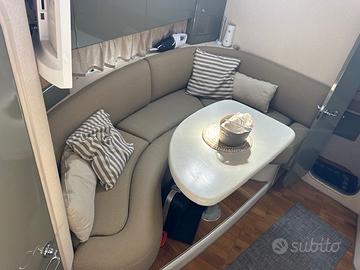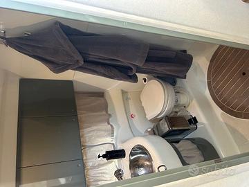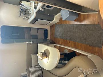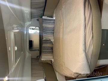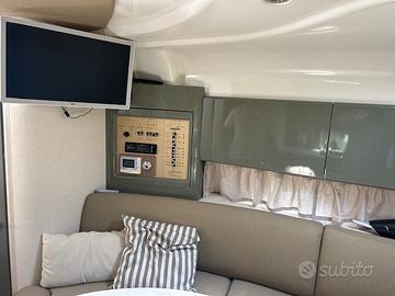 Pavimento in Teak,impianto stereo, TV e posti letto totali 4 + 2 completano un ambiente interno pratico, luminoso e perfetto per la crociera.