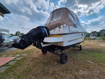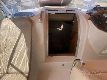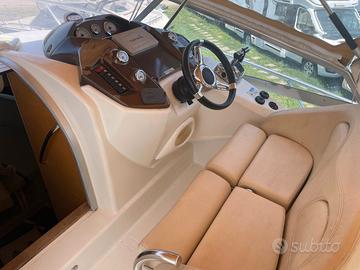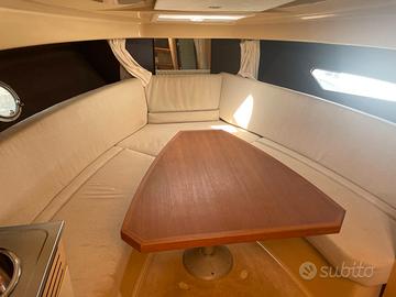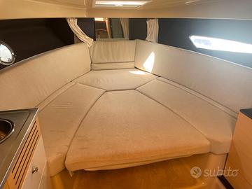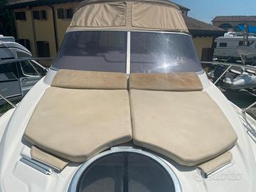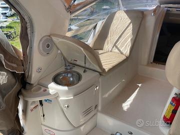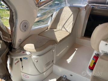 Natante completa di tantissimi optional, come doppia batteria, pompe di sentina, cuscineria completa a cellula chiusa, strumentazioni motore, GPS, impianto stereo con doppia stazione, cucina completa di frigorifero e microonde, telo camping trasformabile in spray hood o richiudibile per avere il solo tendalino con supporti su Rollbar in VTR, Flaps di poppa, cavo banchina 220V, salpa ancora elettrico, Tv in cabina, dotazioni di sicurezza, bracket motori originale Cranchi, impianto idrico con doccetta e lavabo esterno, apertura gavone di poppa servoassistito.