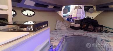 vendo natante Crowline 25.5 fuori tutto 8.50 m. x 2.60 barca molto spaziosa, cabina altezza uomo con fornello 2 fuochi e sicurezza perdita gas, lavello 1 armadio grande per vestiti più altri vani x stoviglie e altri oggetti. Posti letto 3 + 2 in cameretta sotto posto guida, bagno separato con water elettrico lavello e doccia con scarico in una vasca con pompa automatica x lo scarico. Rivestimenti interni 2024.Volante regolabile in altezza luci led ble. Motore Mercruiser 5700 v8 benzina di cui sono stati sostituiti collettori e raiser 2025. Sempre tagliandata sia motore che piede strumentazione 2024, salpancore elettrico radio stereo con USB ,e tante altre cose. Vendo x inutilizzo, se interessati chiamare il 338 9341419 .prezzo 20'000 trattabili dopo visione.