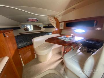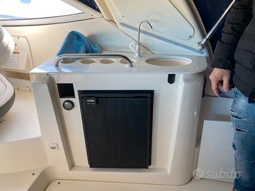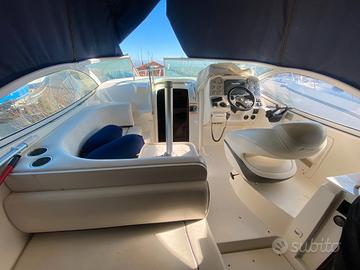 ACCESSORI: Verricello elettr., elica di prua, carica batterie, impianto di banchina, boiler, frigo in pozzetto, Faro orientabile, cuscineria di poppa, cuscineria di prua, cappottina camper, tendalino sole, plancetta allungata.