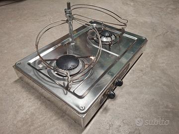 Piano di cottura Can per barca. Costruito in acciaio inox. Completo di termocoppia di sicurezza. Misure 440 x 290 x 90 h mm. . Completo di fermapentole. Perfette condizioni pari al nuovo