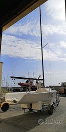 Barca a vela da regata Elliott 6.8 cantiere Custom anno 2002, lunghezza 6.8 m, larghezza 2.5 m, immersione 1.68 m, motore ausiliario fuoribordo Honda 2.3 Hp del 2004, randa dracon steccata 2020, fiocco dracon 2020, gennaker versione club (mai usato) del 2016, albero Lico Spar con sistema autonomo per disalberare, deriva mobile con argano di sollevamento, bulbo in piombo, carrello da revisionare, vendo in buono stato per inutilizzo, visionabile presso il porto di Roccella Ionica (RC). Astenersi perditempo.