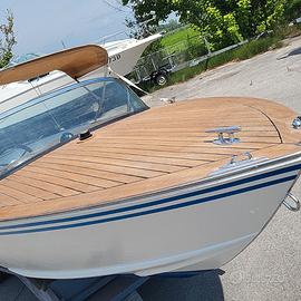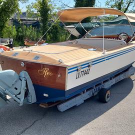 Legnami: pozzetto in mogano, coperta in teak, carena in compensato marino.