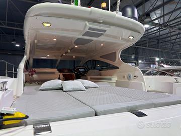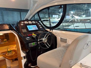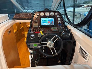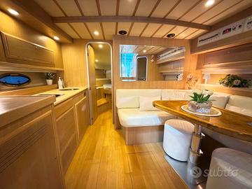 ANNO 2009 MOTORI 2X575 VOLVO PENTA – Ricondizionata 2024- 2025- Versione EXCLUSIVE - Interni due cabine e due bagni. 1 Matrimoniale italiana, 1 Doppia letti gemelli, 1 Dinette, 2 Cucina, 1 Toilette Ospiti , 1 Toilette Armatore con doccia. -L'imbarcazione proposta vede gli interni in Versione Exclusive, ovvero la più accogliente e rifinita; composta da dinette interna completa di cucina e divano pranzo-relax, e due cabine e due bagni. Comando motori elettronico. Display (Raymarine Axiom Plus 12 Multifunzione). Cartografico, Ecoscandaglio, Telecamera (in sala macchine),Pilota automatico (Raymarine), Contametri catena, Radio VHF (Raymarine),Flaps con Indicatori, Elica di poppa, Elica di prua, Faro orientabile. Pozzetto in teak,Hard top (apribile elettricamente), Garage per tender, Argano x recupero tender, 2 Bitte abbattibili x tender, Motore fuoribordo per tender (Honda BF 2,3), Tender Aermarine 2.20 con poppa abbattibile, Salpa Ancore Elettrico, Luci di cortesia,Luci subacquee, Presa acqua banchina, Aria condizionata, Boiler, Clima reversibile, Cucina Interna ben accessoriata, con piano cottura in vetroceramica e frigorifero interno, Mobile esterno con lavello, con piano cottura in vetroceramica e frigorifero,Impianto acque nere, Antenna Satellitare TV,Impianto TV, 3 TV (Dinette esterna, dinette interna, cabina Armatore), Collegamento internet Wifi, Impianto audio Aquatic AV In tutti gli ambienti con regolazione ed esterni, Radio AM/FM (con remot control in plancia). TAPEZZERIE: Copripozzetto, Cuscineria completa (Nuova). Teli copri finestra. Interni in moderno rovere chiaro.