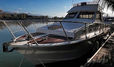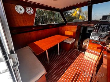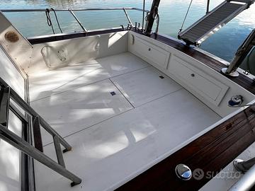 DC9, Cantieri Della Pasqua, anno 1979. Disposizione esterni: ampio pozzetto e prendisole, fly con seconda postazione di comando accessibile tramite scaletta. Disposizione Interni: ampia dinette con comandi e cucina completa. Cabina con letto matrimoniale, cabina doppia con due letti singoli, wc in locale separato. Refitting 2025: pompe di sentina, stacca batterie e tendalino Fly nuovi. Impianto elettrico completamente revisionato. Refitting 2021: tendalino nuovo Lunghezza: 9.60 Larghezza: 3.20 Motori: 2x200 hp AIFO fpt Ore di moto 1950 Velocità di crociera: 17 nodi Velocità massima: 21 nodi Consumi a velocità di crociera: 30l/h per motore Accessori 2024 nuovi: Salpa ancore elettrico, stereo e casse pozzetto e fly. ECO/GPS Garmin echo 200; Ecoscandaglio Koden cvs -106; Cuscinerie; Tendalino; WC manuale. OTTIME CONDIZIONI GENERALI Tutti i contenuti (caratteristiche, metrature, accessori, ecc. ) degli annunci sono puramente indicativi, potrebbero contenere imprecisioni o errori, pertanto non comportano nessun vincolo contrattuale. Per garantire la privacy, l'indirizzo può non rispecchiare esattamente l'ubicazione del natante ed è utile al solo fine di fornire un riferimento generico per la sua localizzazione ed un ausilio alla consultazione. Il prezzo è soggetto a mediazione agenzia. Gli acquirenti hanno diritto di ispezionare personalmente l'oggetto e/o di sottoporre il natante a perizie a loro spese, il mediatore non può essere considerato responsabile delle probabili inesattezze qui riferite. Consigliamo di visionare sempre l'oggetto prima dell'acquisto. Scopri il prestito flessibile senza spese.