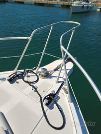 DC 9 S, l.f.t. 9,95, natante, anno 2007, 2 x 280 Iveco TD, linea asse, ore moto 500, vel.max 31 nodi, crociera 20 nodi,serb.carburante 600 lt. inox, 1 cabina doppia prua, quadrato trasformabile, bagno con wc elettrico, cucina 2 piastre induzione + 3 fuochi gas, frigo, serb. acqua 300 lt. inox, acqua calda, moquette interna nuova, Vhf, Gps plotter, eco, pilota automatico, trollin walve, stereo,salpancore elettrico, passarella, tendalino, cuscineria esterna, lavello esterno con circuito diretto acqua banchina, 2 vasche del vivo, molto ben tenuta.