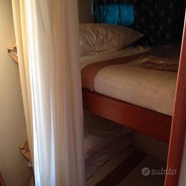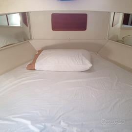 n. 1 cabina armatoriale con letto matrimoniale (sagomato in memory anno 2021) e n. 2 lettini a castello - bagno con wc elettrico, piano in marmo con lavabo e specchio molato - bidet (acqua calda e fredda) - dinette trasformabile in altri due letti. Moquette 2021 su tutta la superfice interna dello scafo. Serbatoio gasolio alluminio 600 litri (anno 2019) - serbatoio acqua dolce 300 litri - interni cabina pilotaggio, che è stata completamente refittata, in teak massello.