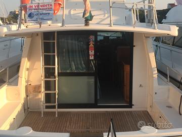 Anno di costruzione: 1988 Lunghezza mt.: 11,37 Larghezza mt.: 3,75 Motorizzazione: CAT 2 x 320 hp EB DIESEL Portata 10 persone, ecoscandaglio, gps / plotter, pilota automatico, doppia strumentazione su fly, plancetta lunga, passerella, cucina nuova, eliche di rispetto, 1 asse, 1 timone, tendalini vari, telo invernale, cuscinerie perfette. POSSIBILE PERMUTA