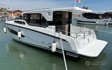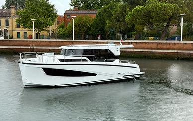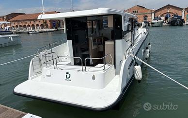 E' un natante dalle caratteristiche di abitabilità e comfort meravigliose, abilitato alla navigazione costiera e può portare 8/10 persone. Lo scafo è dislocante e raggiunge i 10kn di velocità con un'autonomia di circa 400 nm. È una barca con costi di gestione contenuti e una stabilità invidiabile, equipaggiata con motore entrobordo yanmar da 110hp in linea d'asse. Questo piccolo trawler ha un design accattivante e offre soluzioni interne moderne. La cabina armatoriale è a tutto baglio, e il letto può essere aperto in 2 letti singoli oppure un matrimoniale. Il bagno è grande, con una cabina doccia separata a tutta altezza. La seconda cabina può essere configurata come cabina letto, oppure cabina armadio con un locale studio/ufficio. La dinette ha un enorme divano a C comodo per tutti gli ospiti. La cucina è completa: il piano cottura è a scomparsa, i pensili ospitano la cappa aspira fumi, il frigorifero, e una miriade di scomparti e cassetti.