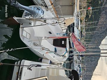 Barca di prima mano in ottime condizioni e accessoriata. Lung. 7.49 m; larg.2.49 m ; pesc. 1.50 m. Rollafiocco con genoa del 2019. Randa steccata con lazybag Motore Honda 10 cv , con tasto di accensione elettrica ,del 2019. Strumenti Raymarine : Profondimetro, solcometro e anemometro. Serbatoio acqua 120 L 4 cuccette (cuscineria in ottime condizioni); angolo cottura 2 fuochi e lavandino (mai usato); bagno separato (mai usato) Doccetta a poppa. Tendalino copri pozzetto. Non si vende il posto barca.