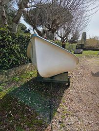 barca a vela modello 420 completa di albero e boma. NO VELE. NO CARRELLO. NO TIMONE. NO DERIVA. lunga 420 e larga 165. visibile Lago di Bracciano.