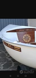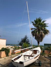 Alpa Brise 370 completa di albero divisibile,boma ,fiocco e randa .Con particolari in mogano, più carrello per spostamenti in acqua.