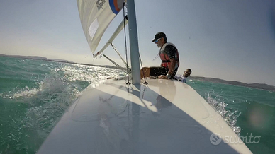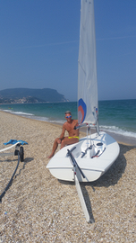 Deriva x14 ben tenuta, dal 2017 in garage per inutilizzo, sempre lavata ad ogni uscita e coperta. Come si può vedere dalle foto si può andare in due adulti in quanto il pozzetto è abbastanza ampio. Gavone a prua stagno, deriva basculante, strozza scotte al centro del pozzetto per una più semplice virata o strambata. In dotazione anche carrello da alaggio. Il prezzo non è trattabile.