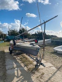 Vendiamo deriva FD Mader 1982 con due giochi di vele, carrello da alaggio e carrello stradale.