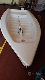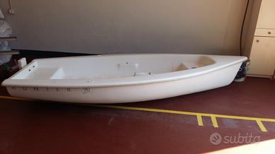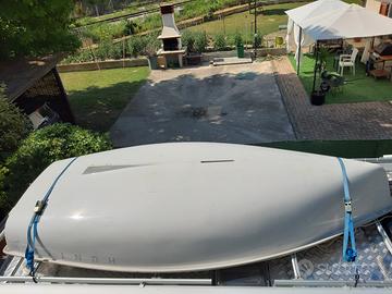 Vendo causa inutilizzo Deriva Hunter 90 , nota marca di barche prestigiose di fabbricazione USA con certificato e con numero di matricola e omologazione . Ha la capacità di portata per 3 persone . Materiale composito ACP pesa solo 45 kg con linea di galleggiamento alta ed è molto sicura . Superficie velica mq 5,20 . Vela originale North Sail . Ottima per mare , fiume e lago . Usata in mare per soli 30 giorni in 3 estati e trasportata sul tetto del camper . E' completa di manuale con i disegni tecnici e le specifiche per l'armamento che è molto semplice .Ha l'armatura originale ed è in ottime condizioni eccetto qualche graffio sui bordi laterali di appoggio a causati dal portapacchi . Scafo perfetto . Compresi nel prezzo gli accessori : due rulli da alaggio , remi , doppi scalmi , blocco porta motore , fascia bloccapiedi sul fondo , doppia deriva , ancora , tendalino copri-barca e carrello barca con ruote grandi per trasporto manuale . La barca si può utilizzare a vela , remi e motore ed è pronta per navigare è maneggevole e molto divertente per ragazzi e adulti . La barca è trasportabile con un'auto di media cilindrata come da foto o furgone e camper come è stata utilizzata . Consiglio visione dal vivo . Visibile a Guastalla RE . No perditempo . Prezzo 2000 trattabile e si accettano offerte . Se interessa vendo anche Motore Mercury da 2,5 Cv € 500,00 trattabili . In caso di interesse invio ulteriori foto del manuale tecnico e informazioni .