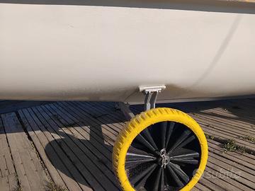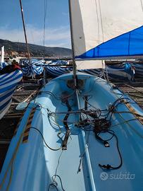 Come da titolo vendo Deriva Strale 4,90 compreso di: -randa in kevlar all'80% (pagata 550 qualche anno fa) -randa grande da allenamento -randa piccola da allenamento -2 fiocchi -2 boma, 1 originale in legno perfetto, 1 in alluminio nuovo (pagato 150 euro qualche anno fa) -Spinnaker -2 timoni, 1 ristrutturato l'altro no un mese fa, ho spostato la barca dalla sella in legno originale ad un Carrello2 e ho notato da qualche giorno che si è formata una piccola bugna, da rinforzare nel caso si voglia usare un carrello tipo Carrello2, nel caso si voglia lasciare nella sella originale non ci sono problemi perché non esistono problemi di osmosi o nessun tipo di infiltrazione (neanche 1 goccia in 5 ore di navigazione); il problema è risolvibile con 200 euro. la barca oltre a quello non ha nessun tipo di problema, l'abbiamo tenuta in modo maniacale prima mio zio per 7 anni adesso io da 3 anni circa. prezzo assolutamente non trattabile, è già un affare cosi.