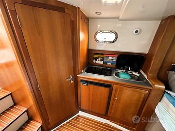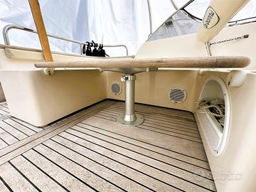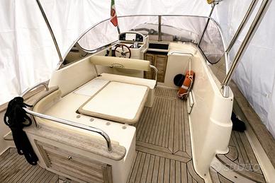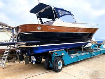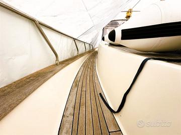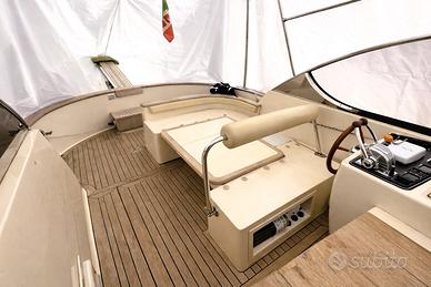 NOTE SUL PREZZO IVA Pagata DATI PRINCIPALI Cantiere: Di Donna Modello: SERAPO 33 Classic Anno Costruzione: 2009 Lunghezza: 9,22 m Condizione: usato Stato conservativo: ottimo Tipologia: Open Codice: 898270 Di Donna Serapo 33 Classic - 2009 - Motori sbarcati 2020 - Refit 2022 - 2026 Eleganza senza tempo, cuore italiano, refitting recente. Se stai cercando una barca che unisca il fascino intramontabile del gozzo sorrentino alle prestazioni di un moderno open planante, questo Di Donna Serapo 33 Classic è la soluzione perfetta. Linee classiche, finiture in teak e qualità costruttiva artigianale si combinano con una motorizzazione potente e affidabile, offrendo una navigazione stabile, sicura e sorprendentemente brillante. La barca mantenuta con cura , é sempre stata in acqua per i soli tre mesi estivi poi sempre rimessata in secco. Una barca per chi non vuole semplicemente navigare, ma arrivare con stile. Il Serapo 33 Classic è la scelta di chi cerca identità, qualità e piacere di vivere il mare senza compromessi. Dati principali : Lunghezza f.t.: 10,53 m ; Lunghezza: 9,22 m ; Larghezza: 3,35 m ; Pescaggio: 1,51 m ; Dislocamento: 7.500 kg ; Portata persone: 10 ; Categoria CE: B - D'altura ; Motorizzazione e prestazioni : 2 x VM Motori 320 HP (2 x 235 kW VM) ; Ore motore: circa 1.100 ; Velocità massima: 34 - 36 kn ; Velocità di crociera: 24 - 26 kn ; Consumo medio: ~80 l/h ; Planata: già stabile intorno ai 16 - 18 nodi ; Performance brillanti per la categoria, con un perfetto equilibrio tra comfort e sportività Refitting e condizioni, questa unità è stata oggetto di importanti lavori negli ultimi anni: 2022 - 2026 : motori sbarcati nel 2020 ; rifacimento completo teak presso cantiere Di Donna ; Revisione eliche e linea d'assi ; Fondo epossidico ; Sostituzione parabrezza e vetri laterali ; Aggiornamenti strutturali su pedana e accessi ; Tende ombreggianti ; materasso su misura. Coperta e spazi esterni : Il pozzetto è il vero cuore de