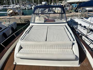 Descrizione Gozzo di 10 metri, natante motorizzato (2) VM 320 hp,consuma 70 l/h a 22 nodi di crociera. Sia gli spazi interni che esterni sono ampi, rispetto ai più blasonati gozzi di fattura campana i volumi fruibili sono decisamente maggiori. buone condizioni di manutenzione. Lunghezza scafo 9,90 metri (max: 10,50 metri) Larghezza 3,59 metri Velocità Massima 28 nodi Velocità di Crociera 22 nodi Dislocamento 8200 Kg Pescaggio 1,00 metri Revisione Motori Tagliandi regolari Capacità Serbatoi 800 litri Tipo Carburante Diesel Tipo Elica 4 pale Motori VM MR706LH 2 x 320 Ore di moto 770 Trasmissione Linea d'asse manutenzione regolare Serbatoi Acqua 1 x 200 litri N° Batterie 4 Carica Batterie Presente Capacità Batterie 110 Descrizione Interni Ampi spazi interni Cabina a prua con armadi e letto matrimoniale a V Ampia dinette Locale WC Descrizione Armamenti Elica di prua Lewmar, piattaforma bagno maggiorata, tendalini completi, cuscineria completa, chiusura invernale, Tv in dinette (non visibile nelle foto), caricabatterie Quick Descrizione Strumentazione GPS Raymarine C120 con radar Autopilota Raymarine Flap Lenco incarico esclusivo di vendita provvigioni di agenzia del 5% + iva Visibile in mare