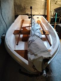 Vendo deriva mobile dinghy verga Plast libellula , inaffondabile, tutta originale timone remi albero e vela, barca unica introvabile, peso 45 kg trasportabile su barre auto, ideale per chi inizia o per pesca dato che ha la poppa predisposta per piccolo motore.vendo comprensiva di carrello alaggio artigianale.trattabile