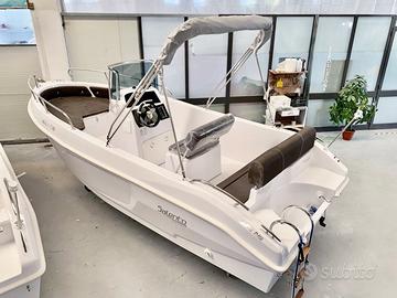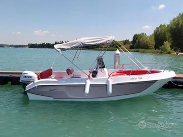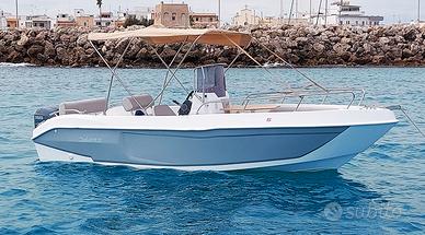 Bellissima Barca Salento Marine Elité 19S , in pronta consegna con cuscineria grey/ dark grey o crema/nocciola. Prezzo speciale sul pronta consegna! Vieni a scoprirla! Modello progettato con una carena dal design innovativo per offrire massima stabilità e sicurezza. Perfetta sia per la pesca amatoriale che per momenti di relax in famiglia o con gli amici, questa imbarcazione garantisce un'esperienza di navigazione affidabile anche in condizioni di mare avverse. Grazie al passaggio laterale e alle sponde alte, offre un comfort superiore e una maggiore sicurezza a bordo. La prua è dotata di un ampio prendisole, che può essere facilmente trasformato in una zona conviviale aggiungendo l'asta di supporto per convertire uno dei pannelli in un grande tavolino. L'Elité 19S è la scelta ideale per chi desidera avvicinarsi al mondo della nautica con un'imbarcazione elegante, sportiva e dalle eccellenti prestazioni. SPECIFICHE TECNICHE Categoria CE: C Lunghezza fuori tutto: 5,80 m Larghezza: 2,20 m Peso a vuoto: 650 kg Motorizzazione: min 40 HP max 120 HP Portata massima: 8 persone ALLESTIMENTO DI SERIE Scafo bianco Pompa di sentina Luci di navigazione a LED Asta 360° Cuscineria completa Tientibene in acciaio Timoneria e volante 4 bitte Girocassero in acciaio Vetrino console Impianto elettrico Pannello comandi soft touch a 8 pulsanti Scaletta con gradini in teak Disponibili carrelli nuovi per ogni imbarcazione. Possibilità di finanziamento a tasso agevolato da 12 a 84 mesi. Motorizzabile con finanziamento a tasso zero. INFO & CONTATTI Ufficio Vendite e Amministrazione: Showroom & Accessori – Sabrina: Assistenza WhatsApp: Ci troviamo a cutrofiano, viale delle tabacchine 10, (Le) Vi aspettiamo!