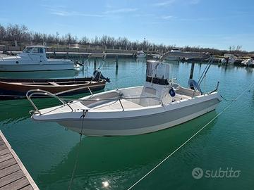 Si vende dolphin 21 del 2020 con motore honda 40/70 stesso anno e con poche ore, utilizzo privato. Vendesi per passaggio a barca superiore. Sostituito nel 2025 ecoscandaglio con lowrance elite fs9 e trasduttore da 600watt. Se si vuole lasciare questo ecoscandaglio (acquisto e montaggio nel 2025) chiedo 1000 euro in più, o faccio sostiuire rimettendo il vecchio in foto senza problemi nel prezzo. Numero due batterie nuove da 100 Ampere e due prese per mulinello elettrico installate dall’estate 2025. Installate anche 4 scarpette in acciaio inox per porta canne sulle murate. Nota bene: ha fatto solo 3 anni in mare, i primi due anni solo 30 ore di mare e sempre su carrello