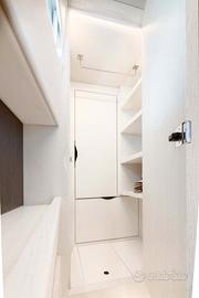 Ospita 3 cabine, di cui una armatoriale con bagno privato. Le cabine sono alte e vivibili stando in piedi. La qualità dello spazio, delle finiture, dei materiali, è di lusso.