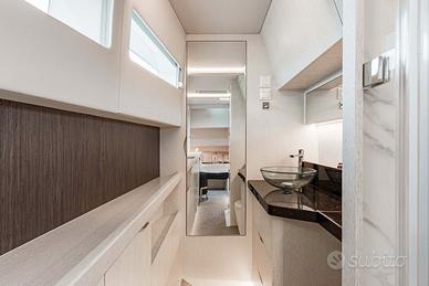Questo MODELLO NUOVO del 2026 in configurazione Voyage prevede 3 cabine sottocoperta, la capacità di trasportare fino a 16 persone e la possibilità di trascorrere piacevoli giornate in famiglia o di festeggiare con gli amici. È l'imbarcazione più comoda, imponente e notevole che si possa osservare ormeggiata in porto.