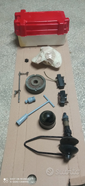 Vendo due motori fuoribordo FIAT whitehead 10 cavalli bicilindrico a due tempi con gambo regolabile. completo di documenti. Uno e' quasi pronto per essere utilizzato( già tagliandato con olio a gambo e messo girante pompa acqua nuova, ripulito carburatore e messe due candele nuove). Gira perfettamente e passa la corrente su entrambe le bobine.ottima compressione. L'altro e' per ricambi. Quindi nessuna spesa per l'acquisto di ricambi. Cedo inoltre una cassetta porta attrezzi , bussola marina, estrattore per volano, cuffie per gambo. Chiave candela, bobine accensione,guarnizioni in alluminio, borsa nautica impermeabile con rosa dei venti e tutto quello che sta in foto. Prezzo leggermente trattabile. Somma richiesta totale 450 euro. A PARTE ( non inclusi nel prezzo) dispongo di serbatoio, pompa adescante con tubo nuovo, salvagente con corda, due giubbini di salvataggio, Batiscopio per fondali marini.etc Ritiro in zona . Possibile spedizione a carico acquirente . contattatemi solo se interessati. Grazie