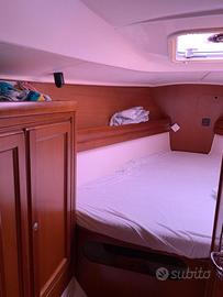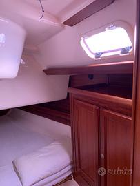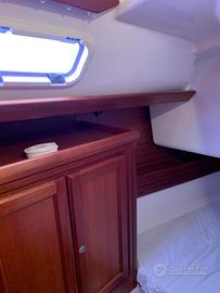 3 cabine, 2 bagni, motore Volvo 40 hp 1450h manutenzione regolare, impianto riscaldamento elettrico in ogni cabina e in dinette, tavolo abbattibile. Vele: randa, Genoa 140%, gennaker. Bimini, pannello solare 30 W. Bandiera francese. A settembre 2023 sostituzione sartie, arridatoi e base albero. Sostituzione raiser (scarico fumi/acqua di raffreddamento). Strumentazione Raymarine (Tridata, Wind, smartpilot) + Garmin GPS maps 421 con ecoscandaglio. Termometro temperatura acqua motore. Tenuta molto bene. Prezzo poco trattabile, commissioni di vendita 3%+iva