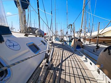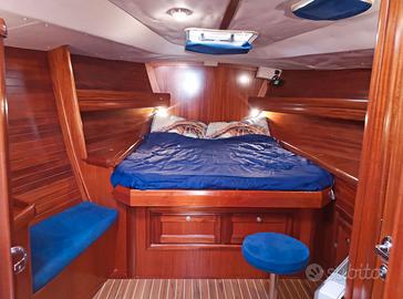 Cruiser puro, comodo e semplice da condurre, caratterizzato da appendici slanciate e da un piano velico potente. Barca con ampie sezioni di poppa, larghi passavanti, tuga bassa e rotonda. I movimenti in coperta sono agevoli e il pozzetto è ben attrezzato con 6 winch e tutti i rinvii delle manovre. BUONE CONDIZIONI + COMMISSIONI DI AGENZIA INTERNI 3 cabine e 2 bagni Cabina armatoriale a prua con letto matrimoniale a penisola e bagno privato con wc manuale e doccino Dinette interna con tavolo da pranzo e divano a U Cucina completa di piano di cottura a 2 fuochi, lavello con pompa acqua di mare, forno e 2 frigoriferi 2 cabine ospiti a poppa con letto matrimoniale e armadietto Bagno con doppio accesso dinette/cabina poppa sx completo di lavabo, wc marino manuale e box doccia separato Calavele STRUMENTAZIONE Chartplotter Autohelm A70 Plotter GPS Valsat 2800 ChartPlotter GPS esterno Lowrance con fishfinder Pilota automatico Autohelm ST7000 Radar Pathfinder Raytheon Display radar Raytheon Pathfinder SL 70 4 Altoparlanti (2 interni - 2 esterni) AIS Classe B Stazione vento Ricevitore meteo Navtex Presa 220V da banchina Stereo AM/FM Radio VHF interno Seacom EME M 168 F Salpancora Elettrico Lofrans 1200V con comandi da remoto Pompe di sentina elettriche Pompa di sentina manuale 3 Batterie servizi da 105 Ah Batteria avviamento motore 85 Ah Caricabatterie Pannello solare 120W Prese usb interne e 12V ARMAMENTO 5 Winch manuali e 1 elettrico Winch tonneggio di poppa Winch tonneggio di prua Rollafiocco Facnor Bombresso Elica MaxProp a 3 pale orientabili Ancora Bruce 20kg con catena 60mt in acciaio 10mm Bimini Spry Hood Lazy Bag e Lazy Jack Vang rigido Tendipaterazzo Harken Passerella Pozzetto e passavanti laterali in teak Scaletta da bagno retrattile Boiler 40 lt Frigorifero interno Isoterm Frigoboat Autoclave Doccia esterna acqua calda/fredda VELE Randa Full batten Genoa Avvolgibile Gennaker con calza Trinchetta terzarolabile