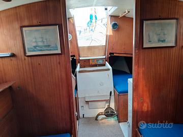 Natante di 9,25 mt del 1970, motore Volvo Penta 16 CV del 2019, scafo esente da osmosi. Velatura completa (randa, genoa, tormentina). Ormeggiata a Fiumicino (RM). Disponibile Tender, radio nuova ed autopilota SIMRAD. Tangone non disponibile.