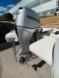 Gommone Ecoflyer BWA e motore honda 40 CV fine 2016, lunghezza 5,40 mt, appena tagliandato, consumi irrisori, molto capiente per la categoria, dispone di due grandi aree prendisole, omologato per 8 persone, accessoriato con tendalino nuovo, appena istallato, appena decapato e cerato, scaletta di risalita, luci di via e 360. gommone pronto, nessun lavoro da eseguire, carrello da cantiere.