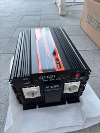 Inverter di potenza elettrica 12v che trasforma l'energia in ingresso provveniente da fonti di alimentazioni fra cui batterie d’auto, barche, roulotte in Onda Sinusoidale Pura, necessaria per fare funzionare dispositivi come frigoriferi, computer, macchine di caffè, trapani, compressori. Potenza Continua: 3500W / Spunto di Picco Massimo 7000W Luce LED che si accende in caso di problemi con l’inverter. Protezione da Sottotensione, Sovratensione, contro Polarita’ Invertita, Sovraccarichi, Corto Circuiti, Surriscaldamento. Ventola Silenziosa a Gestione Intelligente: si accende quando l’inverter si surriscalda Include Telecomando Remoto per Controllare l’inverter, cavi, due tapi, fusili. E' ideale per gite in barca, in campeggio, caravan, auto, per lavorare dove non c'è elettricità. Bisogna solo collegare l'inverter alla batteria e quindi ai dispositivi elettrici. COMPLETAMENTE NUOVO MAI USATO. Vendo causa acquisto sproporzionato per le mie esigenze.