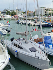 costruita nel 2012 sottovuoto in infusione; 2024 in reffitting totale completo. Doppie sartie, draglie in tessile(dynema) e draglie in acciai , doppi supporti pale timoni in inox. Ha 1 randa Square top North Sail (duvetica), 2 fiocchi North Sail in buone condizioni; 1 gioco in laminato della One Sails (da regata) in ottime condizioni; 1 jennaker Supreme (duvetica) in buone condizioni(quello rosso in foto) La barca é tutta armata harken carbon air block ed motorizzata con fuoribordo mercury 5 cv Sail power. Ha tutte le dotazioni di bordo entro le 6 miglia e ancora con cima e catena per la rada; carrello stradale Ellebi da 1500kg appena revisionato in motorizzazione, con montati i supporti dell Elan (venduto a parte) certificato CE classe C Cell 3385616479