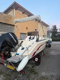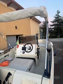 Vendo barca completamente restaurata,giudabile senza patente , impianto elettrico nuovo, cuscineria completa nuova, antivegetativo appena fatto, tendalino completo nuovo, motore nuovo con 277 ore , revisionato con elica nuova , carrello stradale omologato con impianto elettrico, freni nuovi e gomme nuove . Doccetta con acqua dolce, stereo Bluetooth, e molti altri accessori.