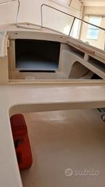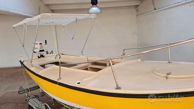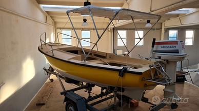 Passera di 5 mt con fuoribordo Johnson 25 avv manuale, 2 tempi, completa di plancette di poppa con scaletta, tendalino sole, scafo refittato come da foto,