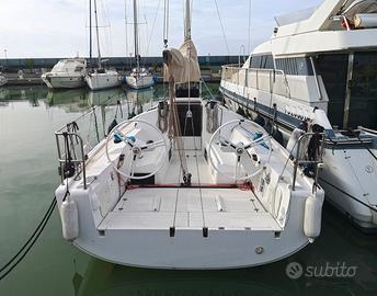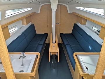 Elan 320, moderna, agile e divertente, che combina prestazioni sportive con comfort e reale usabilità in crociera. Natante pronto all'uso con doppio timone a ruota e motore Volvo 18hp con 962 ore. BUONE CONDIZIONI + COMMISSIONI DI AGENZIA INTERNI 2 cabine e 1 bagno Cabina di prua con letto a V con estensione Cabina di poppa a babordo con letto matrimoniale e armadio Dinette con tavolo centrale ad ante abbattibili, divani contrapposti a murata e mobiletti pensili Postazione carteggio a tribordo Cucina a L completa di lavello in acciaio, cucina a gas con 2 fuochi, forno e frigorifero a pozzetto Bagno a tribordo completo di lavabo, wc elettrico e doccia STRUMENTAZIONE 2x Bussola Log Ecoscandaglio VHF Orizon Eclipse AIS Raymarine rx/tx Display autopilota Raymarine P 70 Plotter GPS interno Raymarine Aseries 7” Display Raymarine ST 70 con ripetitore su ogni ruota del timone Salpancore elettrico Quick 1000 W Boiler Impianto TV Stereo con altoparlanti interni/esterni Pompa di sentina elettrica/manuale Batteria avviamento 74 Ah Batterie servizi 2x100 Ah Caricabatterie Impianto elettrico 220/12 volts ARMAMENTO Scafo bianco in VTR Ponte in VTR Panche pozzetto e calpestio in VTR Albero passante e rig Selden con 2 ordini di crocette aqquartierate Vang rigido Selden Sartiame spiroidale discontinuo in Dyform Paterazzo in Dyneema regolabile Doppia timoneria a ruota in carbonio con frenelli Carrelli scotta genoa regolabili dal pozzetto Regolazione carrello randa Rollafiocco Furlex 200S a filo coperta 4x Winch Self Taliling Harken 35” Attrezzatura di coperta Harken e Spinlock Lazy bag 2x Ancora Bruce 13kg con catena 8mm 30mt + tessile Bompresso retrattile in carbonio Doccia esterna con miscelatore Scaletta bagno Tendine oscuranti Barra timone di emergenza VELE Randa 1Sails sandwich in dacron con 2 mani di terzaroli Fiocco rollabile 1Sails sandwich in dacron Randa sandwich in dyneema con 3 mani di terzaroli - 2024 Genoa rollabile sandwich in dyneema - 2024 Code 0 1Sails