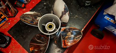 Elica 4 pale inox 14 1/2 x 15 + kit mozzo intercambiabile Honda 200 CV versione rinforzata usata solo per prova
