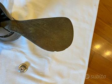 Vendo elica abbattibile a 3 pale marca GORI Propeller. L'elica è stata smontata da imbarcazione a vela e si trova in ottime condizioni generali di funzionamento. L’elica Gori a 3 pale è nota per il suo esclusivo design "overdrive" che permette di mantenere la stessa velocità di crociera a un numero di giri inferiore, risparmiando carburante e riducendo il rumore. Caratteristiche tecniche: • Modello: 3 pale abbattibili • Misure impresse: 16.5 x 12 x 3 LHS (Sinistrorsa) • Numero di serie: 71286 • Materiale: Bronzo ad alta resistenza Stato dell'oggetto: L'elica è completa e i meccanismi di apertura/chiusura degli ingranaggi sono fluidi. Nota importante: Come visibile in foto, è presente una piccola ammaccatura sul bordo di una delle pale. Il difetto è puramente estetico/superficiale e facilmente ripristinabile. Consegna a mano a Firenze, Livorno o Punta Ala