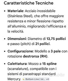 elica in acciaio in perfette condizioni caratteristiche in foto
