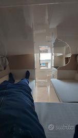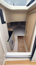 Comodo prendisole di prua e divanetti con tavolino a poppa per i pranzi durante le vostre gite. Il sottocoperta è dotato di tutti i comfort e due comodissimi posti letto con un design assolutamente non scontato, locale wc separato.