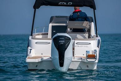 Barca nuova pronta consegna chiavi in mano! FOTO REALI Nuovissima Eolo Marine 7.9EL 2026 pronta consegna e visibile presso nostra sede Centro Nautico Lignano, completa di motore nuovo Honda Marine BF250AK1 2026 Total White. Una combinazione vincente e di alto impatto estetico. La barca è perfetta per chi vuole viversi il mare in tutte le sue sfaccettature non rinunciando alla comodità, Eolo 7.9 EL è un modello giovane e dal design elegante. Comodo prendisole di prua e divanetti con tavolino a poppa per i pranzi durante le vostre gite. Il sottocoperta è dotato di tutti i comfort e due comodissimi posti letto con un design assolutamente non scontato, locale wc separato. Gli accessori compresi sono: carena bianca, cuscinerie beige con texture lamborghini, Roll-bar inox satinato nero con tendalino, console verniciata nera, teak sintetico pozzetto e gradini, verricello elettrico con ancora e catena, impianto acque nere e WC marino elettrico, passo uomo, oblò, finestrature in plexiglass, frigo, prendisole di prua, corrimano prua, musone prua, bitte, ganci di alaggio, tavolo con piede, prolunga prendisole di poppa, scaletta bagno in acciaio inox, iImpianto carburante lt 270, impianto idrico e doccia lt 67, impianto elettrico completo di bussola tromba, luci di via, luci di cortesia, luce 360°, presa di corrente 12 V, pompa di sentina, deviatore batteria, plancette di poppa con rivestimento in teak sintetico. Compreso motore nuovo Honda Marine BF250 Total White modello 2026 con tiumoneria idraulica, impianto doppia batteria, stacabatterie, computer Honda Marine, elica inox, chiesuola elettronica modello 2026. Una barca pazzesca, pronta consegna! Prezzo IVA esclusa, in sede. Unica occasione configurata come questa! PRONTA CONSEGNA IMMEDIATA!