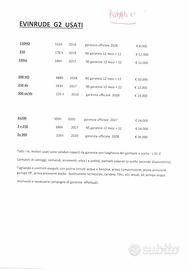 Coppia di EVINRUDE G2 - 300 CV - 2020 - Solo 203 ORE - IN GARANZIA UFFICIALE EVINRUDE - Sterzo dinamico con servosterzo DPS - Trim automatico ITrim - Alta coppia ed alta efficenza - Consumi allineati ai migliori 4T ma col dippoi della spinta !! Completi di cablaggi, comandi, strumentazione a colori Touch, 7.0 eliche inox a scelta, colore pannelli a scelta. I motori vengono consegnati controllati, puliti, con profondo tagliando effettuato : pompe, iniettori, WST, termostati, olio, test, ecc. Completi di barra accoppiamento. POSSIBILITA' di MONTAGGIO PRESSO LA NS. SEDE. Eventuale montaggio comando Joystick per la timoneria Tel - possiamo ritirare usati in permuta GARANZIA UFFICIALE EVINRUDE BRP VALIDA IN TUTTO IL MONDO FINO AL 2028 - ALTRI g2 nell' elenco in foto TELEFONO