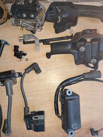 A causa della rottura di un pistone vendo tutti i pezzi che si vedono in foto più eventuali altri su richiesta. Il motore era funzionante. Volano 50€; carburatore 50€; pompa benzina 40€; bobine 20€ cd; Power pack assembly 40€; Gruppo avviamento manuale 50€; Copertura testa pistoni (parte in alluminio) 40€; silenziatori in plastica (si trovano sopra il carburatore 15€. gruppo statore 50€; Inoltre vendo vaschetta inferiore carburatore 10€; guarnizione carburatore e spillo prima dell'ultima modifica 25€. elica 3 pale 40€; altri pezzi su richiesta. Spedizione non inclusa.