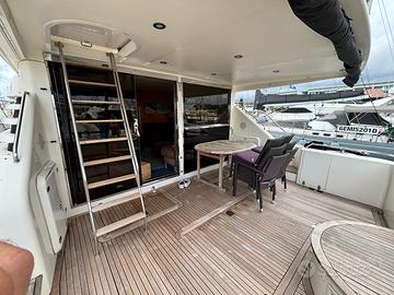 Grande pozzetto di poppa in teak con tavolo da pranzo. Scala accesso fly esterna ed interna.