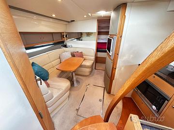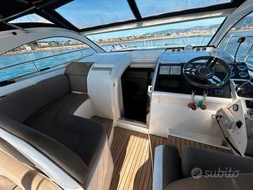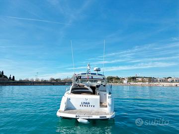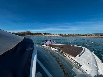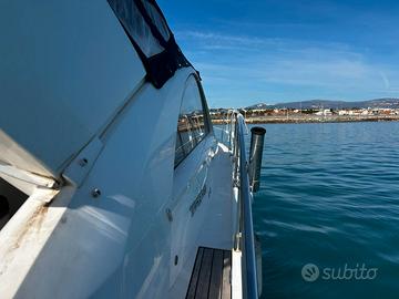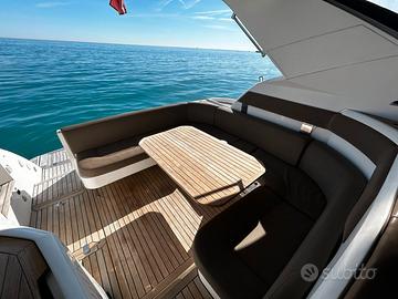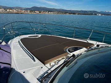 Fairline Targa 38 del 2009 Motori: 2×370CH Twin Volvo Penta D6-370 su piede poppiero DPH-A 773 ore di navigazione - 39 nodi garantiti dopo prova in acqua Lunghezzza: 11,06 m - Larghezza: 3,64m DOTAZIONI – Elettronica: Set Garmin moderno e recente (GPS, AIS, radar, ecoscandaglio, autopilota GHC 10, VHF DSC) - Confort: Generatore Cummins Onan 7 kVA, Climatizzatore reversibile Dometic, Scaldabagno, Caricabatteria Mastervolt 70A – Elica di prua SidePower – Flaps elettrici Lenco – Cabina di pilotaggio: legno teck in ottime condizioni, cucinetta, bimini + cerchio – Pozzetto: angolo pranzo, cucina con fuochi a induzione, forno/microonde, frigorifero, cabina matrimoniale a poppa, cabina doppia a prua, bagno con WC elettrico In ottime condizioni meccaniche, completamente revisionato in 2026 (perizia esperta disponibile su richiesta): – Carena 2026 – Revisione completa motori + piede poppiero Volvo DPH (soffietti + eliche nuove G7) – Passascafo e valvole di scarico sostituiti – Nuovi materassi prendisole in poppa Visibile a Antibes. Per informazioni e visite, CONTATTARE ROBERTO CARDEO al n. EBC YACHT Con noi puoi comprare o vendere la tua barca in modo semplice e affidabile. Offriamo servizi completi: trasporti marittimi, assicurazioni, perizie, finanziamenti e molto altro. Visita il nostro sito!