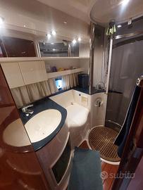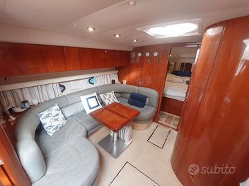 Il Fairline Targa 39 è un'imbarcazione elegante e funzionale. Gli interni sono ben progettati: a prua si trova una cabina matrimoniale con bagno privato, mentre a poppa una cabina ospiti con due letti singoli offre spazio e comodità. La dinette centrale è ampia e accogliente, con tavolo elegante e zona salotto, affiancata da una cucina completa con forno, frigorifero interno ed esterno, piano cottura e ampio piano di lavoro. La barca è dotata di strumentazione elettronica di ultima generazione, tra cui VHF Garmin nuovo (2025), ecoscandaglio, GPS, autopilota, manette nuove (2024), bow thruster, flap elettrici, tridata e bussola. È presente un impianto Wi-Fi e sistema domotico gestibile da app, oltre a un generatore Yamaha 2 kW con serbatoio separato e blower. Le luci LED interne ed esterne, comprese quelle del pozzetto, creano un'atmosfera raffinata anche di sera. I tendalini nuovi (2025) e le coperture complete garantiscono protezione e comfort. Il teak esterno è in buono stato, la passerella è funzionale e ben conservata. Tra le dotazioni di sicurezza figurano pompe di sentina, WC marino elettrico, boiler, cucina a gas, tromba, luci di via e fonda, luci subacquee. Impianto stereo Fusion, radio AM/FM, due TV e digitale terrestre. A parte e possibile un tender da 2,2 m con motore Yamaha 4HP e zattera di salvataggio. La carena è stata rifatta a marzo 2025, con tagliando completo dei motori e piedi poppieri, revisione e sostituzione raiser nel 2024. Teak ravvivato luglio 2025.