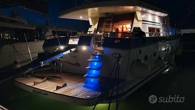 dinette trasformabile ( 2 posti comodi ) (12 posti letto totali), ogni camera ha il suo bagno. Manutenzione straordinaria ai motori nel 2020, tender con pilotina e motore fuoribordo da 15 hp Honda, luci subacquee sotto la plancetta, tutte le luci a bordo a led.